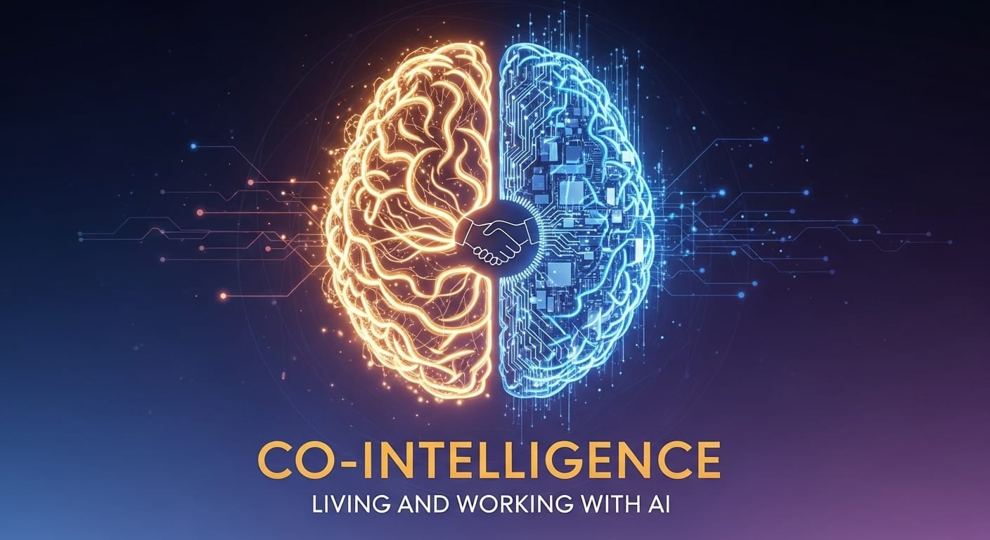 Co-intelligence: living and working with AI depicts a scenario of a symbiotic relationship rather than a competitive one.